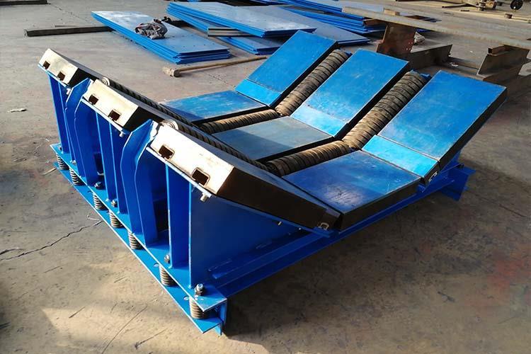 皮帶機(jī)緩沖床主要用于皮帶機(jī)導(dǎo)料槽下方的落料口處,當(dāng)物料下落時,緩沖床利用自身彈性對物料下落到皮帶上的沖擊力進(jìn)行處理,使沖擊力達(dá)到很小,以保證皮帶機(jī)正常運行。皮帶機(jī)緩沖床的表層緩沖條擁有五百萬分子量的高分子聚乙烯板面,該高板于皮帶呈面面接觸,使?jié)櫥赃_(dá)到很高,摩擦系數(shù)降至很低。
